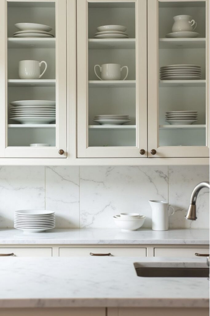 Learning how to style glass kitchen cabinets is a process of trial and error. Don’t be afraid to take everything out, give the shelves a good wipe, and try a completely new arrangement. It’s the easiest “mini-makeover” you can give your kitchen without spending a cent.