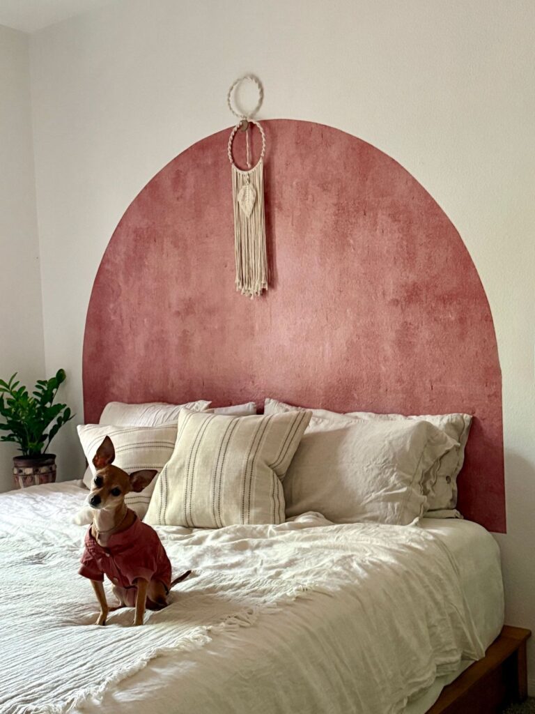 If you have a small bedroom and don’t want a bulky furniture piece taking up space, paint your headboard directly onto the wall.