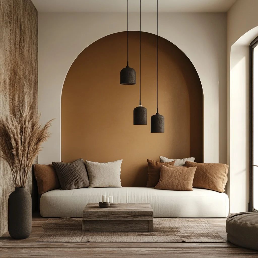 • Why it works: The curved lines soften the “boxy” feel of a standard room. It creates a “niche” look without the expensive renovation costs of actually building an arch.
